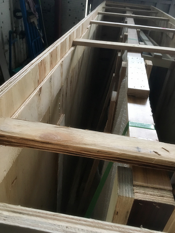 3.兩側(cè)板用夾板拉條連接,兩邊拉條呈三角固定。